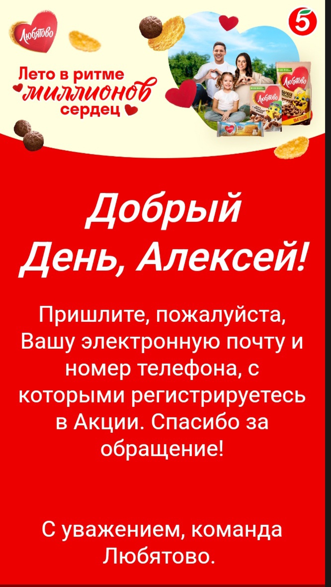 - Совершайте покупки продукции Любятово, участвующей в акции;