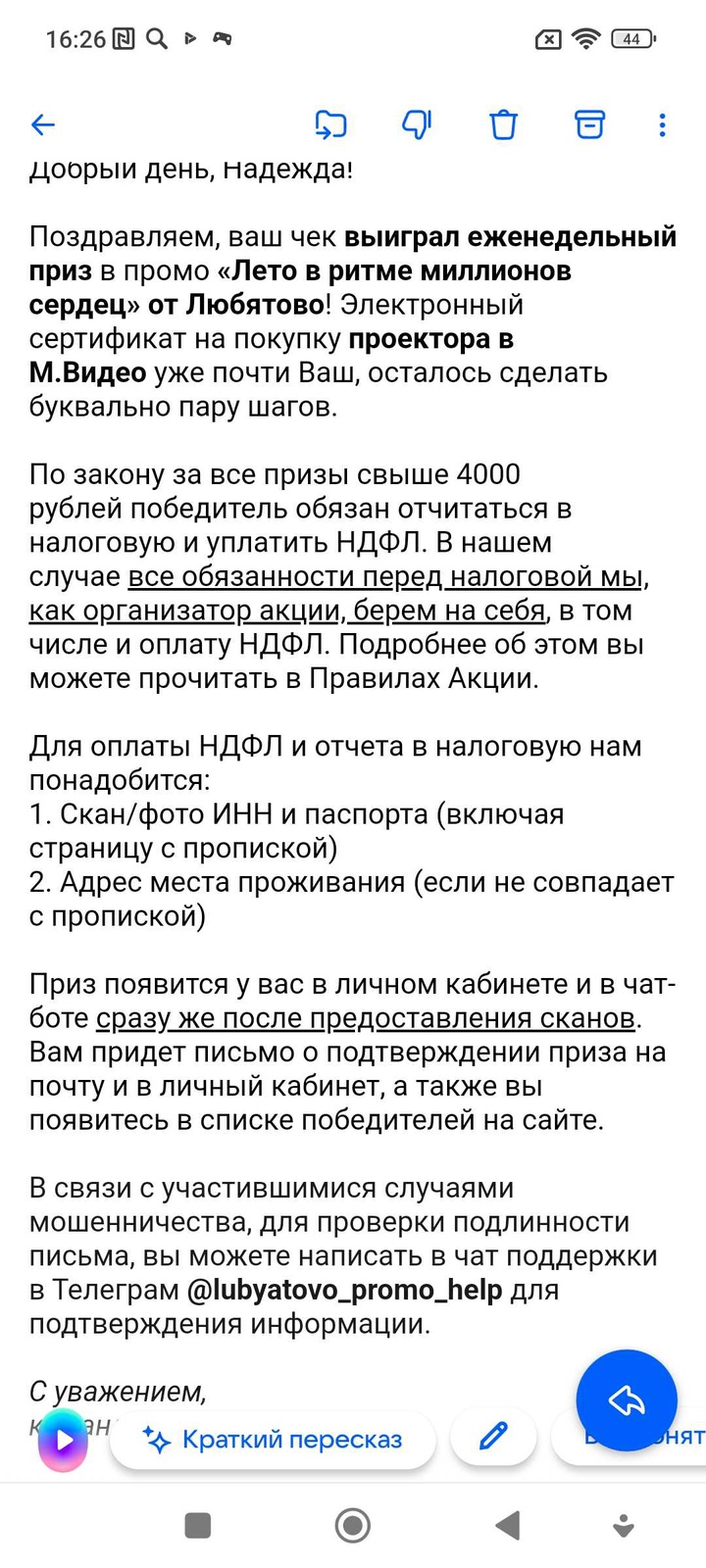 Написала в обратную связь по поводу почтового ящика, с которого пришел запрос, ответили :"Да, это вам пишут организаторы Акции. Спасибо за обращение!