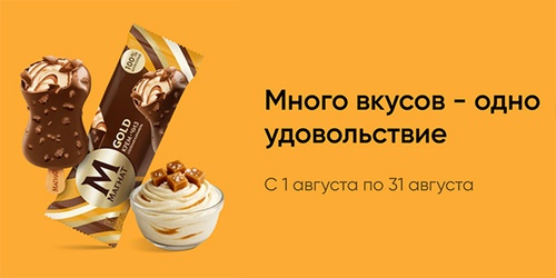 Активируйте персональное предложение акции в мобильном приложении «Перекрёсток» или на сайте. Покупайте 2 единицы мороженого Магнат с 1 августа по 31 августа 2025 года с обязательным предъявлением карты лояльности «Перекрёсток». Получите 400 апельсинок на карту «Х5 Клуба». Каждую неделю августа разыгрываются: сертификаты Перекрёсток на 4 000 рублей, сертификаты на технику на 10 000 рублей, сертификаты на события и мероприятия на 4 000 рублей, кофемашина, колонка Marshall. А главный приз – 150 000 рублей на концерт любимого исполнителя.