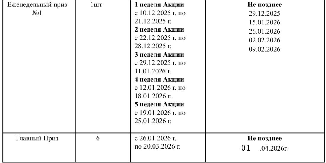 - Полный период проведения Акции: с 10.12.2025 года по 01.04.2026 года;