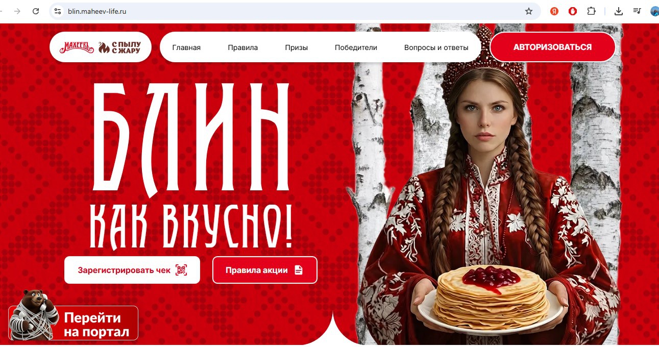 Со 2 февраля 2026 года покупайте продукцию «Махеевъ» и «С пылу с жару», регистрируйте чек и участвуйте в розыгрыше призов. Главный приз - гастротур по России.