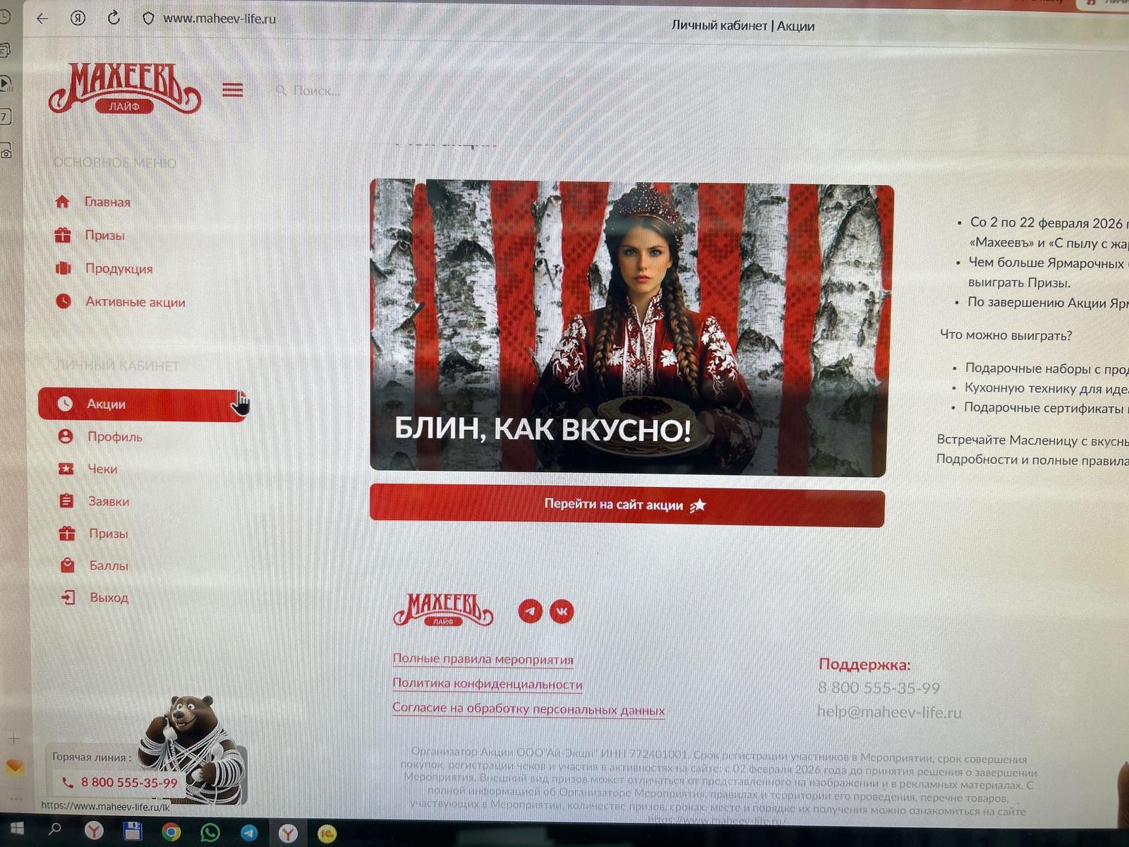 Служба поддержки акции "Блин как вкусно"