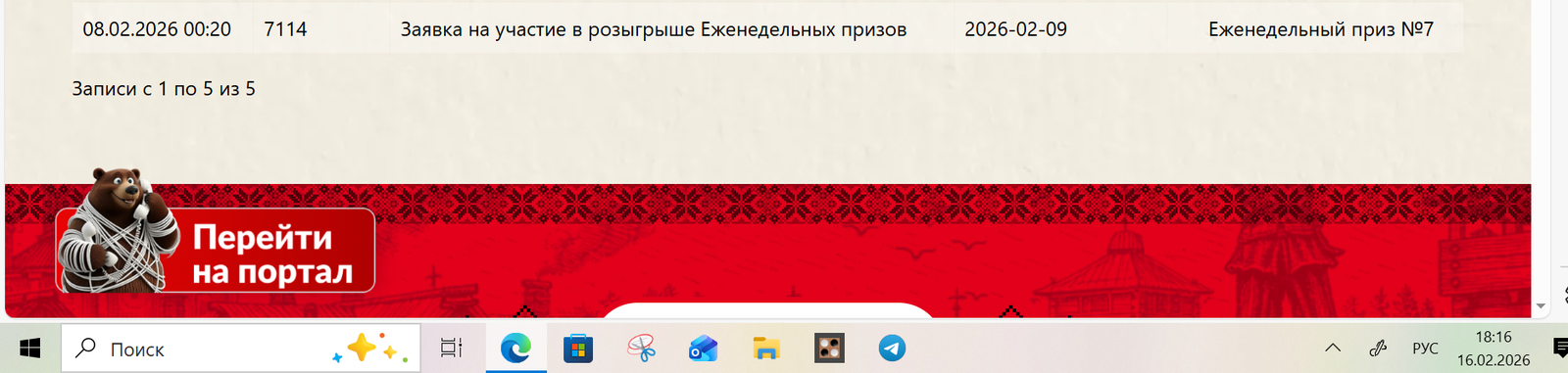 Для подтверждения выполнения Вами Правил Акции, просим до 19.02.2026