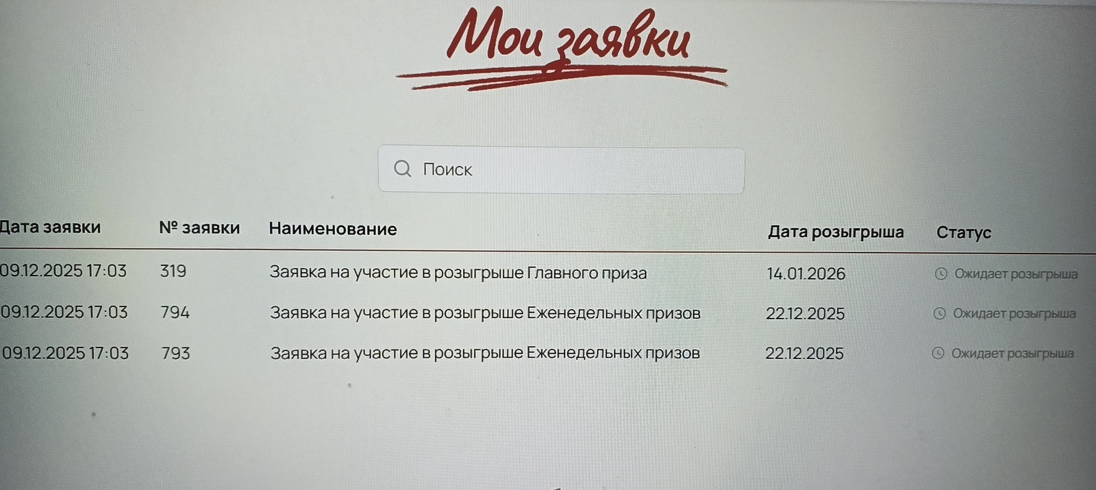 - Дополнительная заявка на розыгрыш Главного приза.