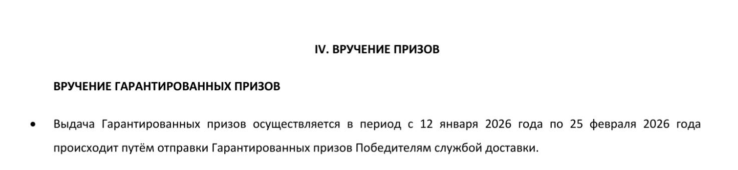 - Срок приема заявок (приобретения Продукции) и регистрации Заявок для участия в Акции: с «25» декабря 2025 года по «25» января 2026 года (включительно).