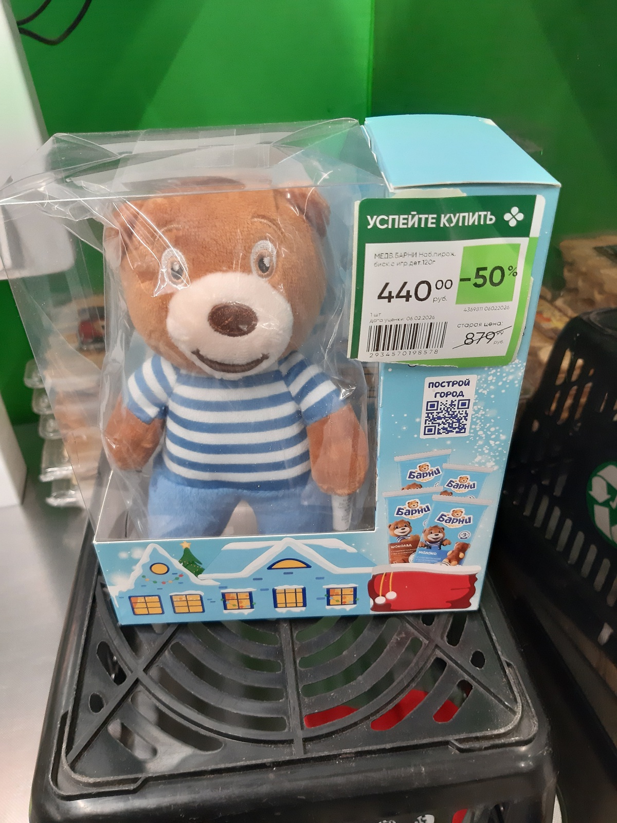Медвежонок Барни знает, что зимние чудеса нужны не только детям! С 25 декабря по 25 января покупайте бисквитное пирожное "Медвежонок Барни", регистрируйтесь в чат-боте в Telegram и становитесь участником розыгрыша!