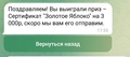 - Сертификат «Золотое Яблоко» на 3 000 руб.;