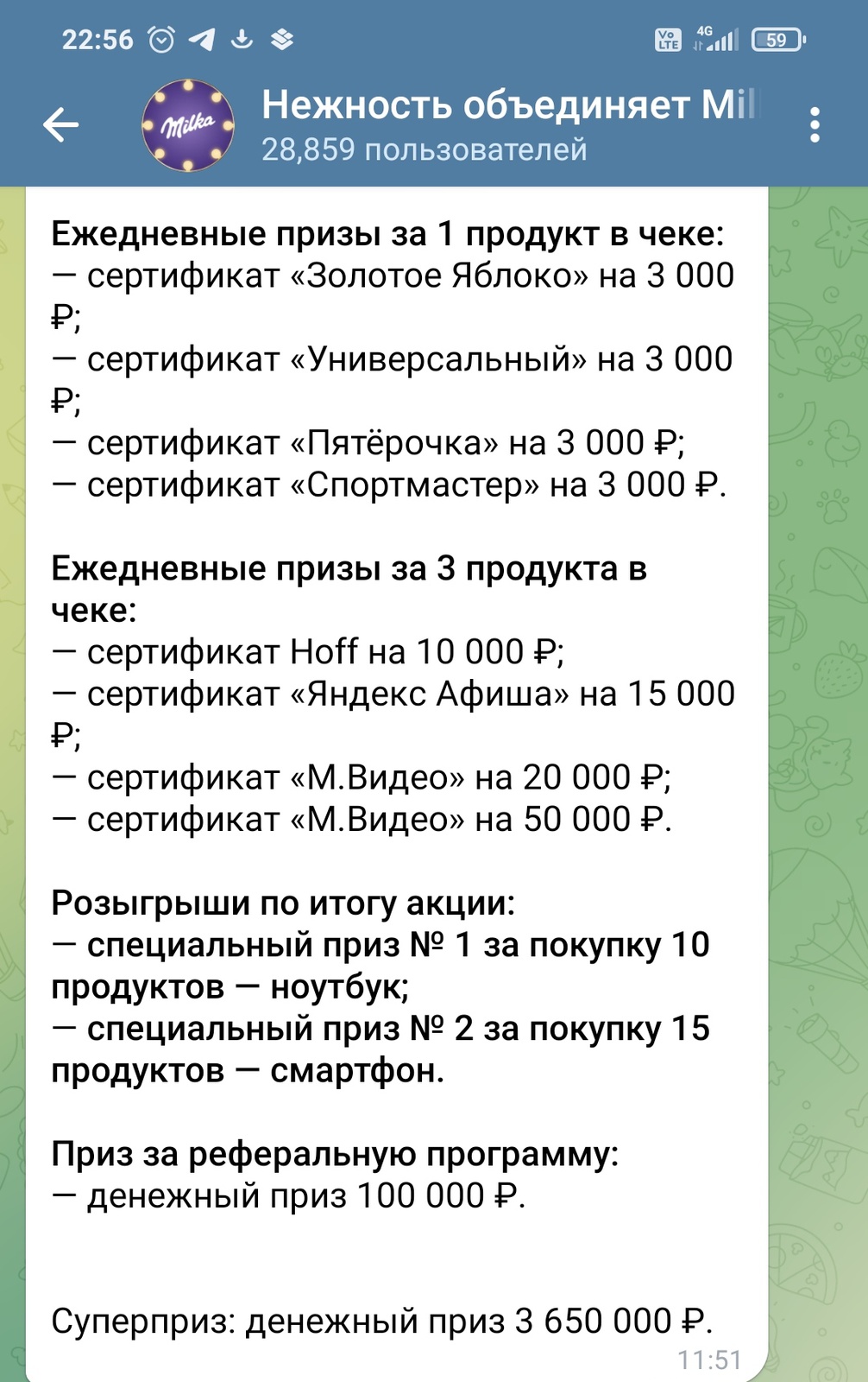 - Специальный приз № 2 за покупку 15 продуктов — смартфон.
