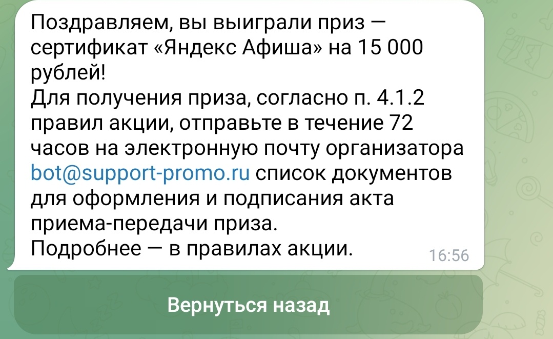 - Сертификат «Яндекс Афиша» на 15 000 руб.;
