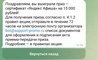 - Сертификат «Пятёрочка» на 3 000 руб.;