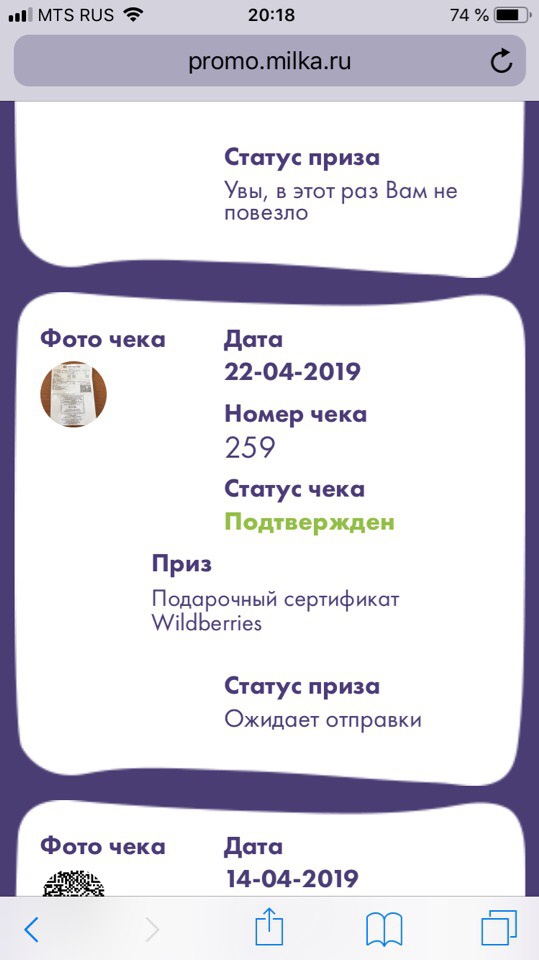 - Зарегистририруйте чек на сайте акции;