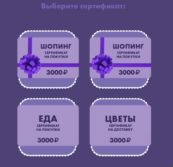 - Подарочные сертификаты OZON, ivi, Киноход, Delivery Club на 1000 руб.;
