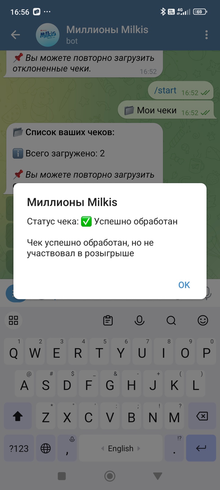 У меня в этой акции азарт не о том, выиграешь или нет, а о том зарегистрируют ли чек.