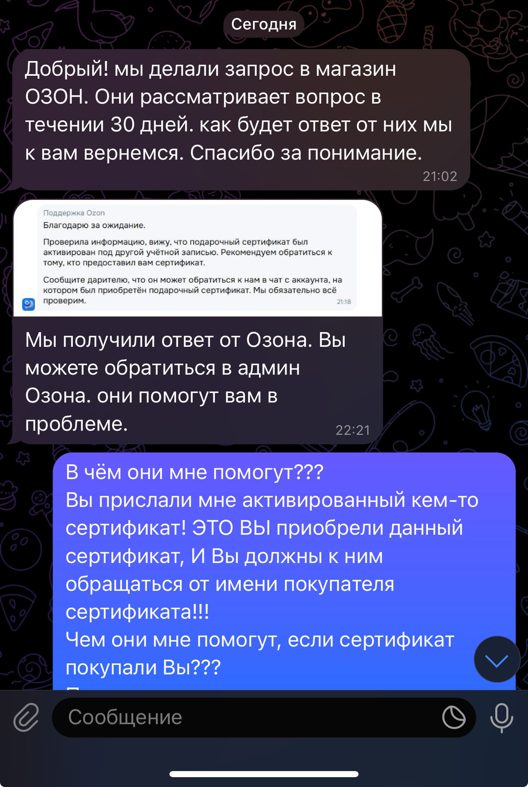 Прислали мне б/у серт Озон, и вместо того чтобы проверить свою рассылку на предмет дублей, предлагают мне разбираться с Озоном🤦🏼♀️