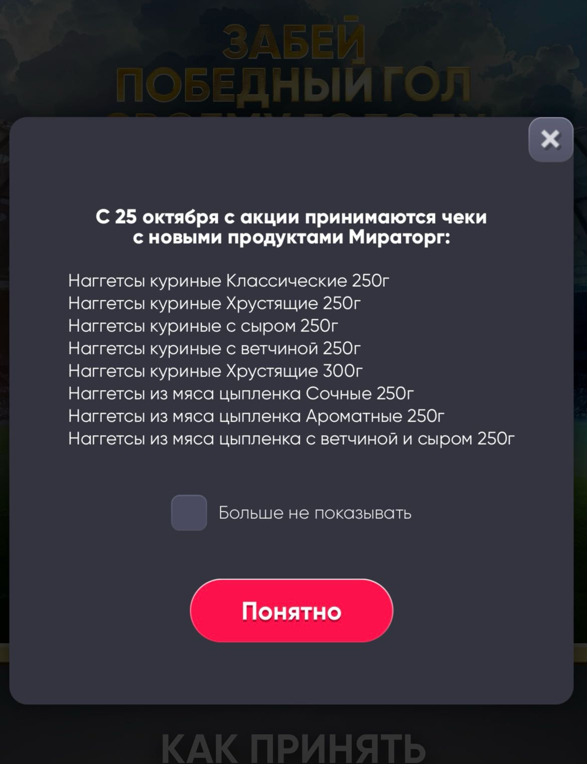 - Покупайте продукцию Мираторг, участвующую в акции;