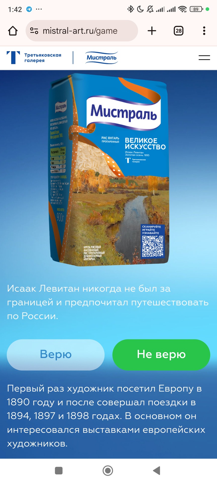 Покупайте крупу Мистраль, регистрируйте чек, отвечайте на вопросы в интеравктивой игре «Верю не Верю!» и участвуйте в розыгрыше призов.