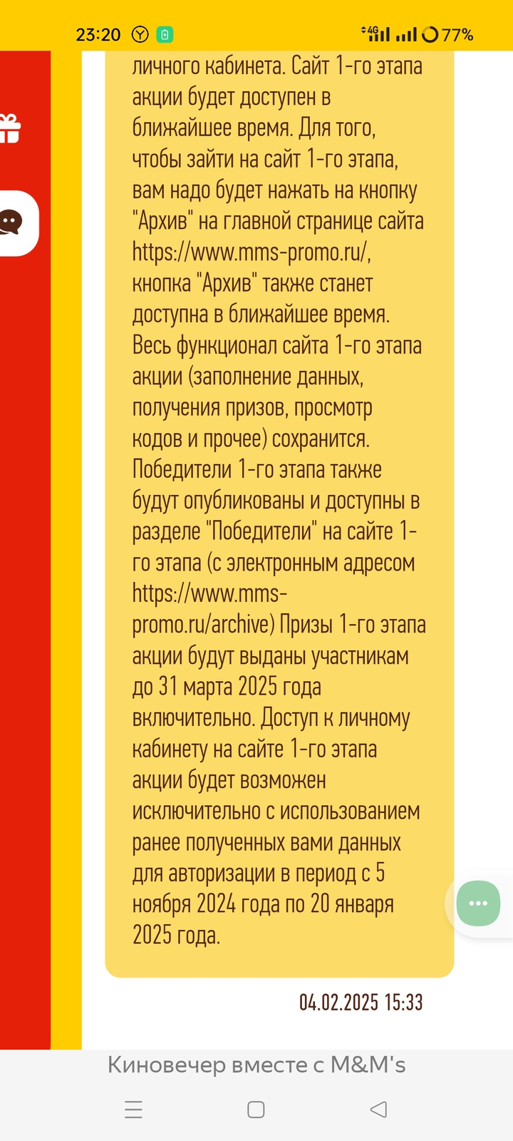 - Специальный приз за регистрацию кода по ссылке-приглашению: стикеры M&M’s®» - количество неограниченно.