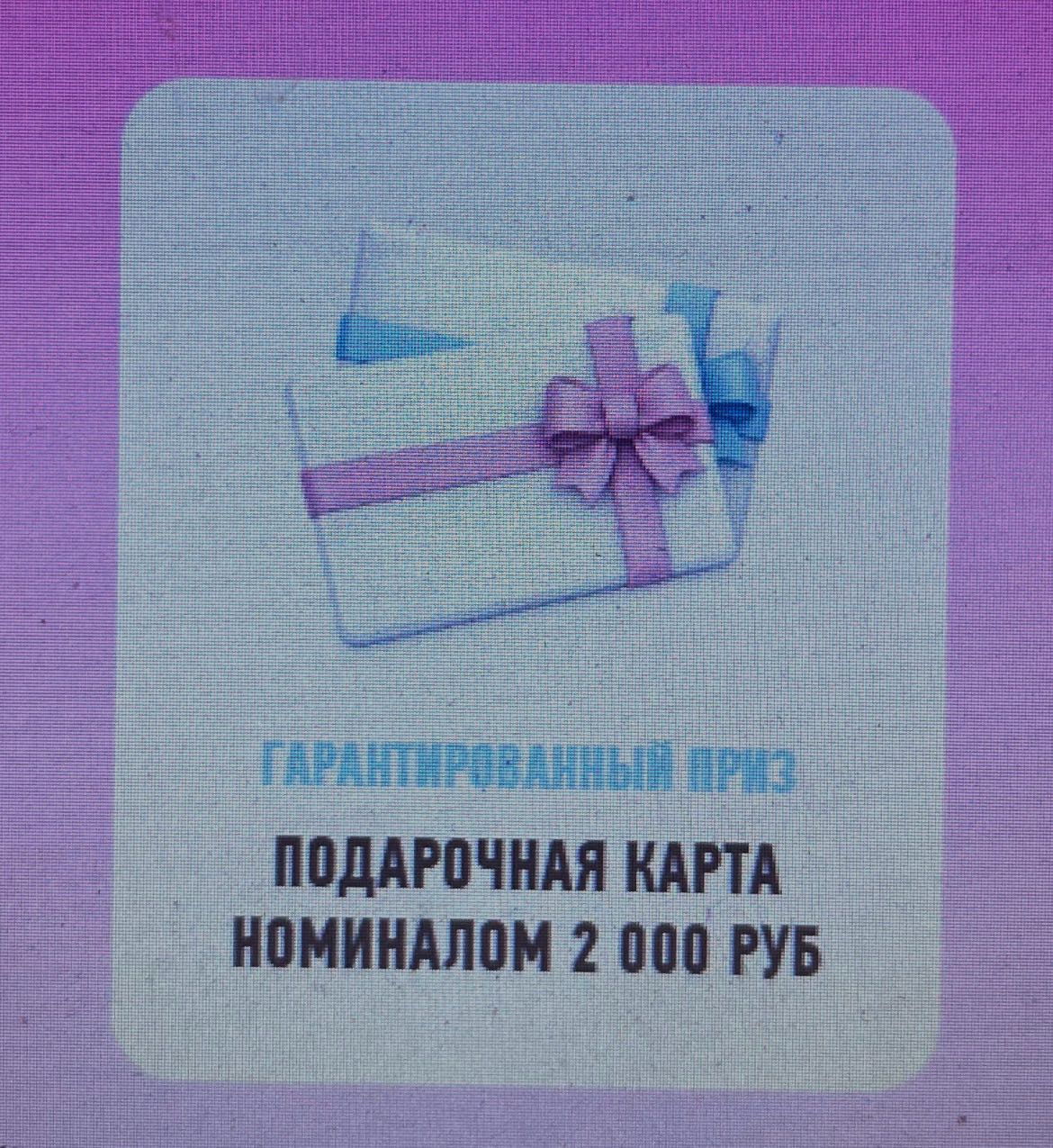 - Подарочная карта номиналом 2 000 рублей - 120 шт.;