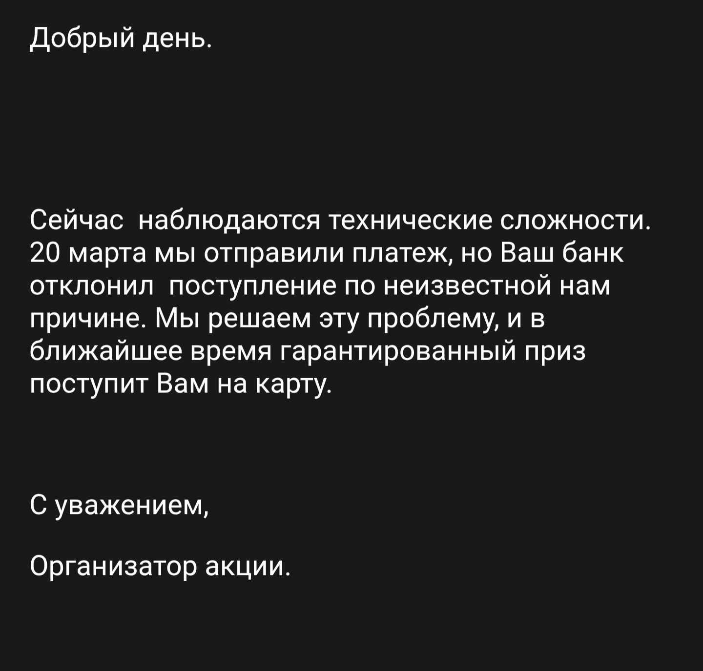 mms@tma-draft.com о том, что готовы получить приз. Вам пришлют письмо, см. скрин.