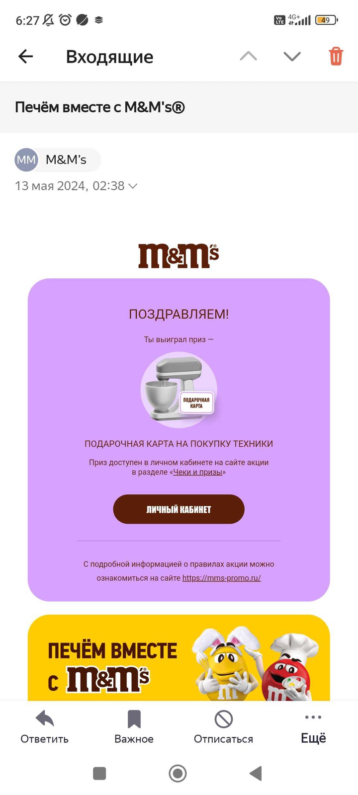 - Покупай M&M’s (драже) и M&M’s & Friends и регистрируй чек на сайте или в Телеграм;