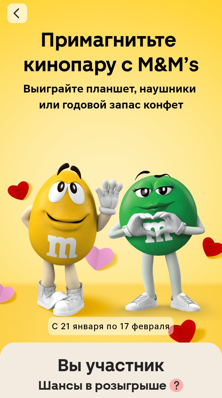 Покупайте акционную продукцию M&M's и Skittles в магазинах «Магнит» с картой Магнит Плюс из приложения, получайте баллы Магнит и призы, в которые влюбляешься!