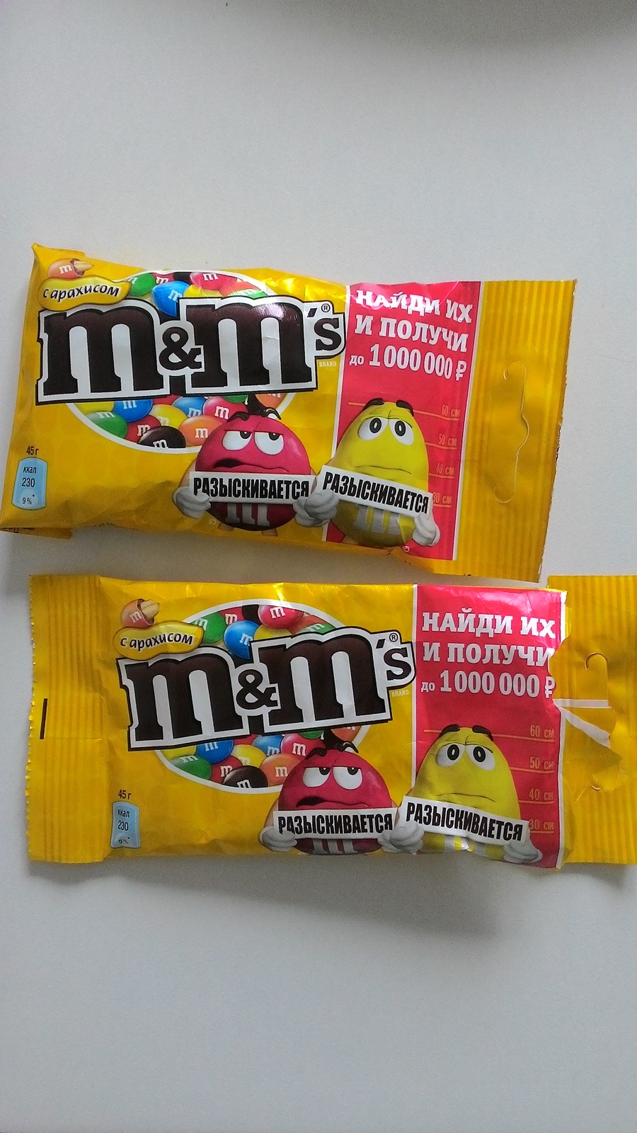 Конфеты вкусны и очень шоколадны. Будьте предельно внимательны и осторожны: пачка только с красными и желтыми M&M’s может оказаться в любом магазине. Вознаграждение – до 1 000 000 рублей каждую неделю!
