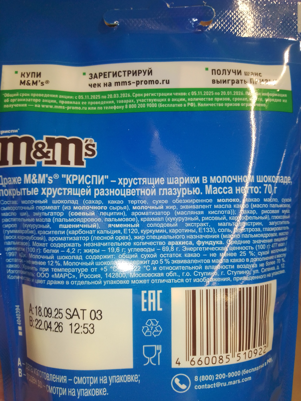 - Покупайте продукцию M&M's и Skittles, участвующую в акции;