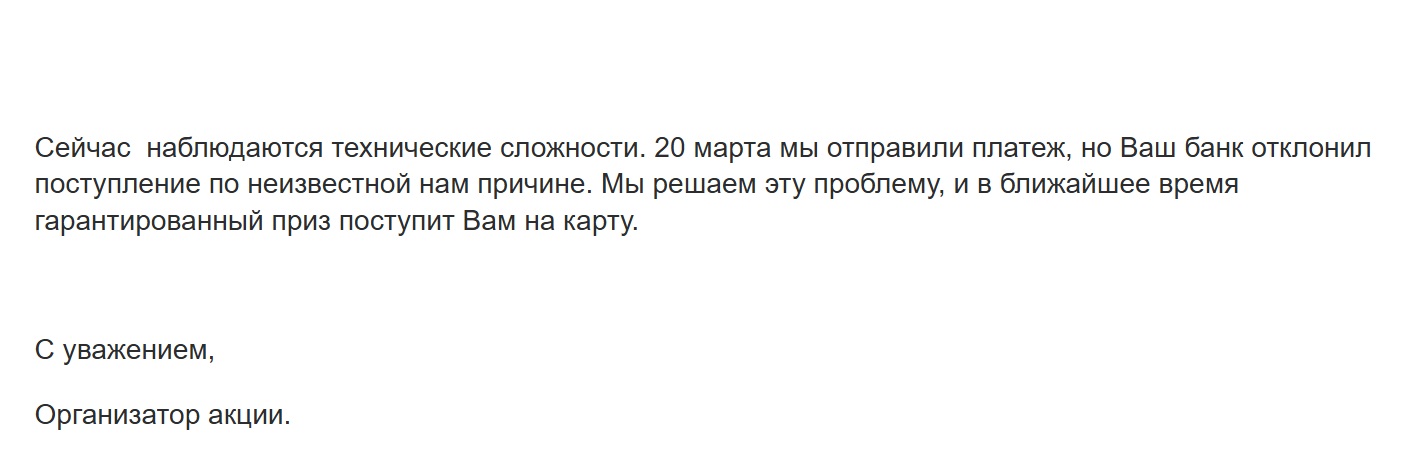 - Гарантированные призы: Деньги банковскую карту - от 5 до 100 руб.