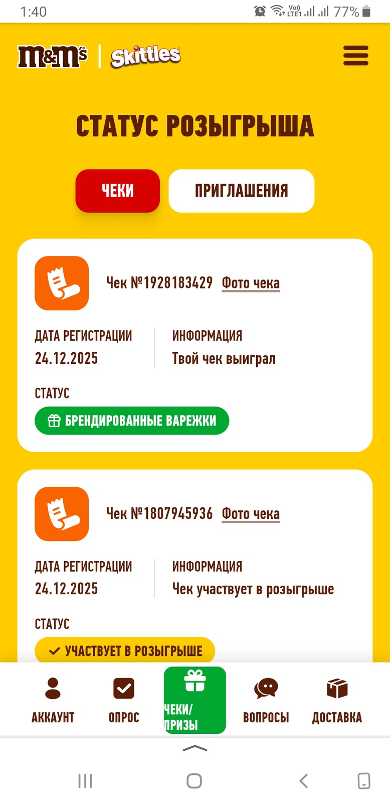 - Регистрируйте чек на сайте акции;