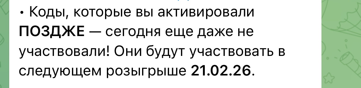 Проведение розыгрыша до окончания календарной недели строго соответствует официальным Правилам акции.
