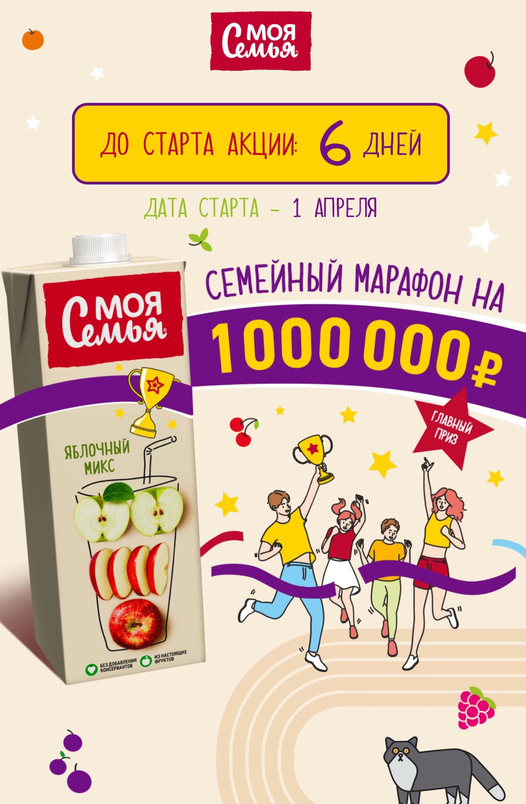 Участвуйте в акции от напитков Моя Семья и выигрывайте призы в семейном марафоне!