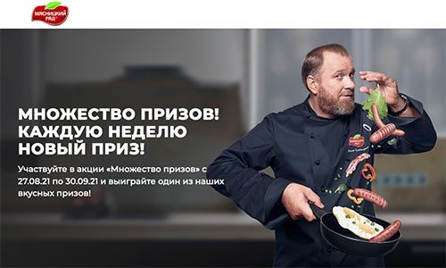 С 27.08.21 по 31.10.21 участвуйте в акции «Множество призов» от «Мясницкий ряд» и выиграйте один из вкусных призов!