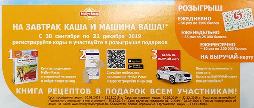 С 30 сентября 2019 года участвуйте в акции от Myllyn Paras. Покупайте продукцию Myllyn Paras в промо-упаковке в магазинах «Пятерочка», регистрируйте коды и участвуйте в розыгрыше подарков.
