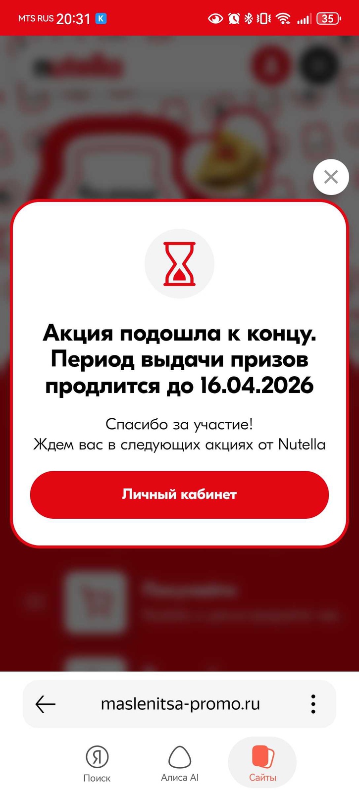 С 26 января 2026 года участвуйте в акции от Nutella. Покупайте продукцию, участвующую в акции, регистрируйте чек и получайте гарантированный подарок. Участвуйте в розыгрыше электроблинницы каждую неделю.
