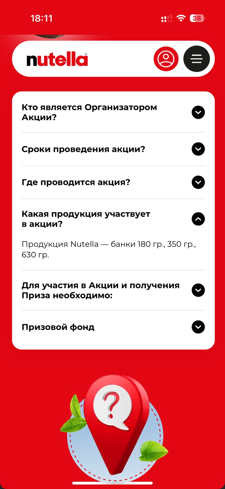 - В Акции принимает участие следующая продукция Nutella® – банки 180 гр, 350 гр. и 630 гр.