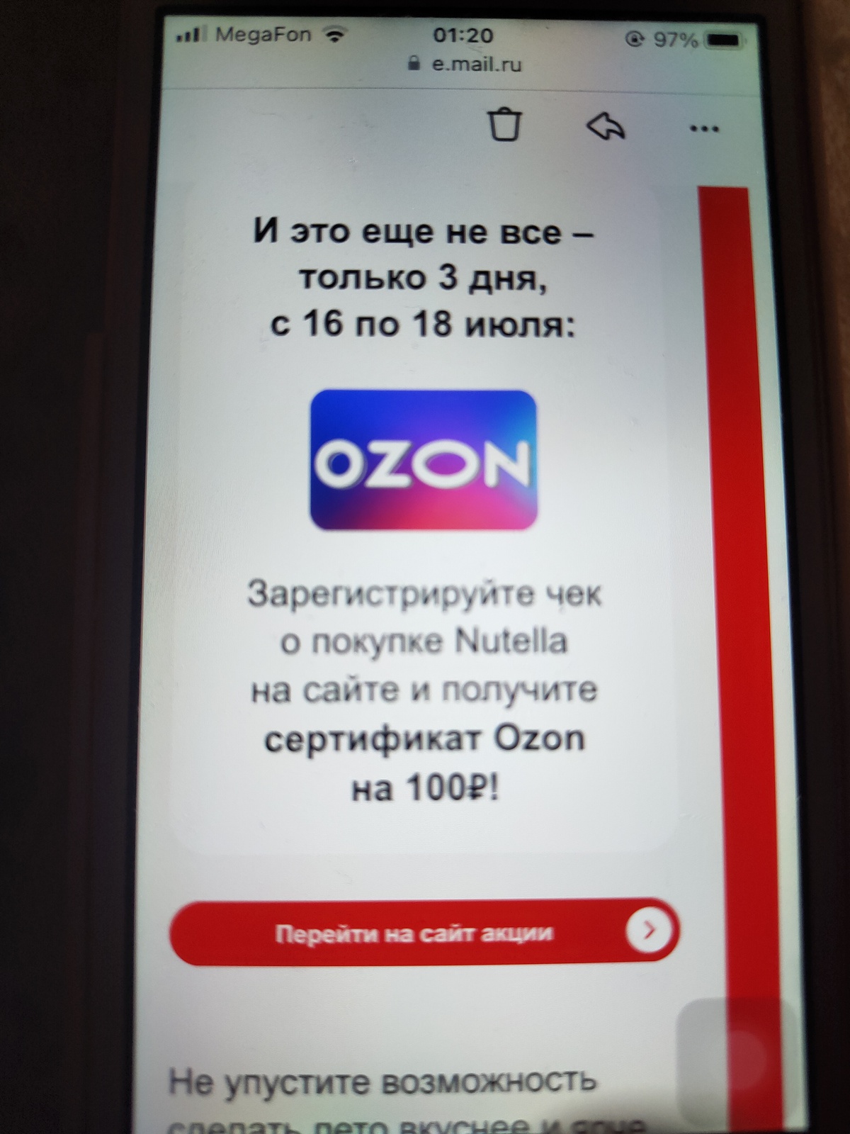 - Покупайте продукцию Nutella на сумму от 299 руб. и регистрируйте чек на сайте акции;