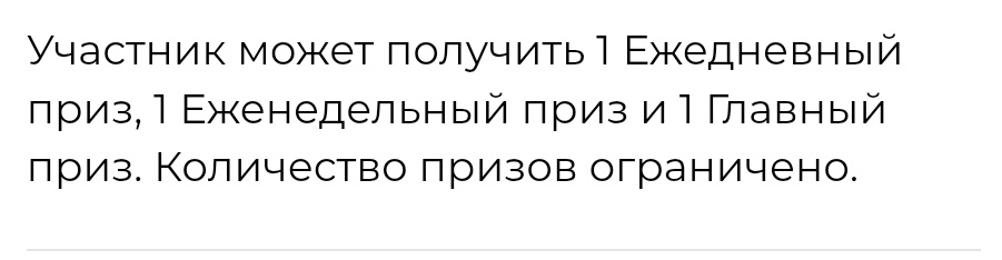 - Еженедельный приз: