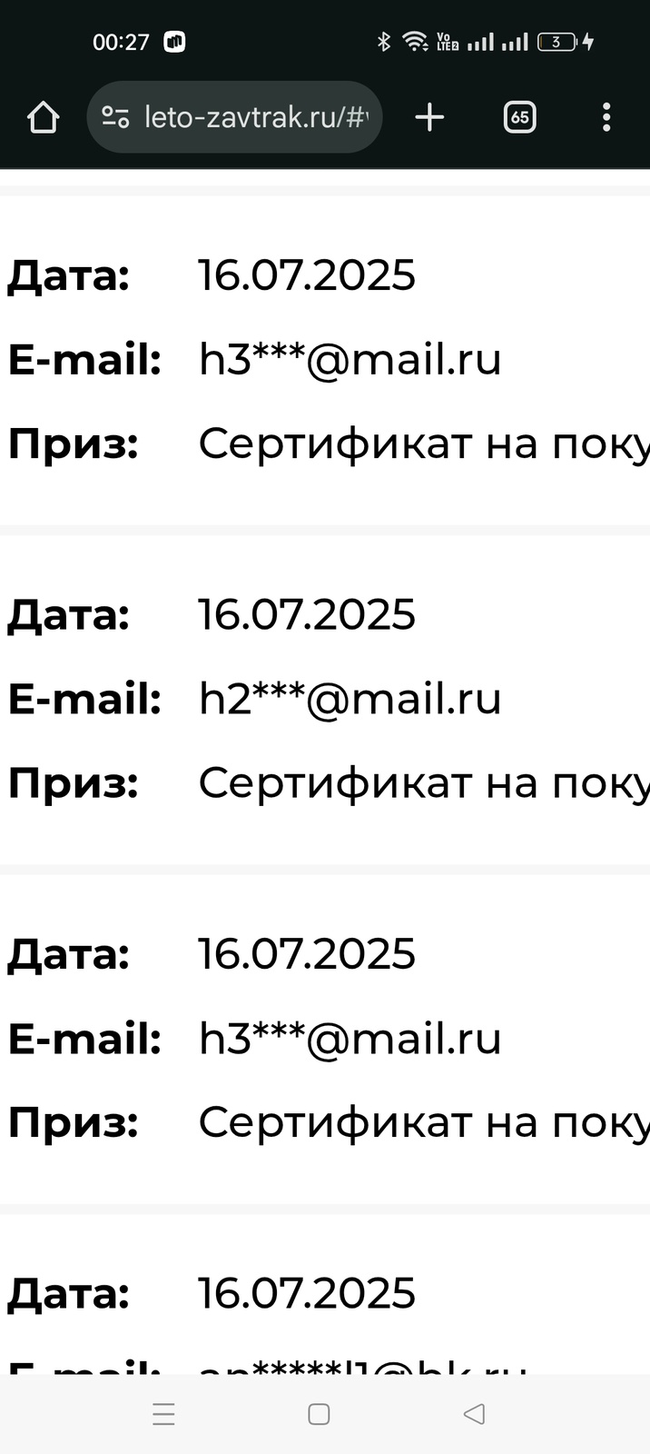 Так и получилось, что этот "кто то" зарегил подряд сколько то своих чеков на свои мало различаемые почты и они все выиграли