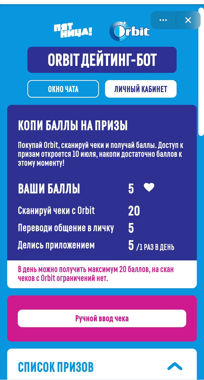 Участвуй в акции от Orbit. Покупай продукцию Orbit, участвующую в акции, получи возможность выиграть 100 000 рублей на свидание мечты.