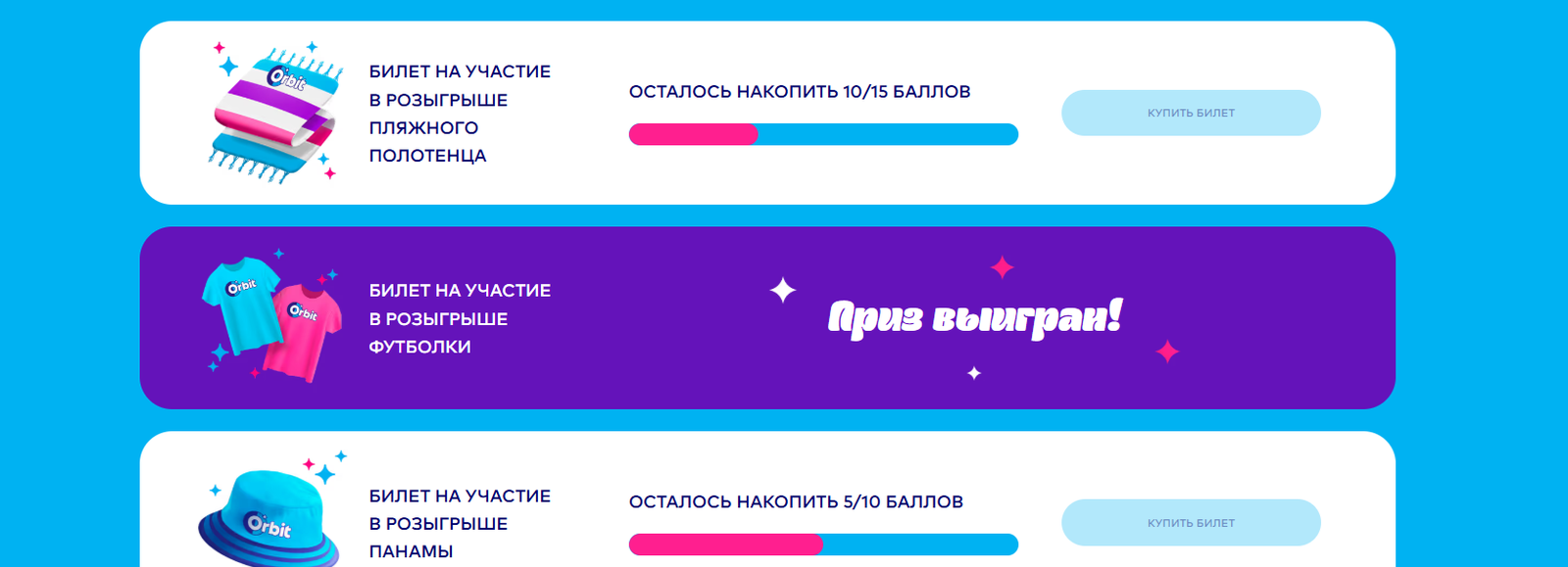 - Гарантированный приз (за сканирование упаковки Orbit®):