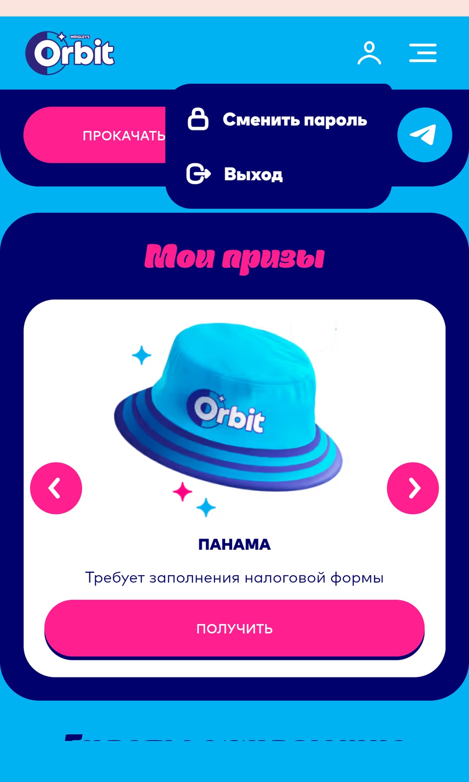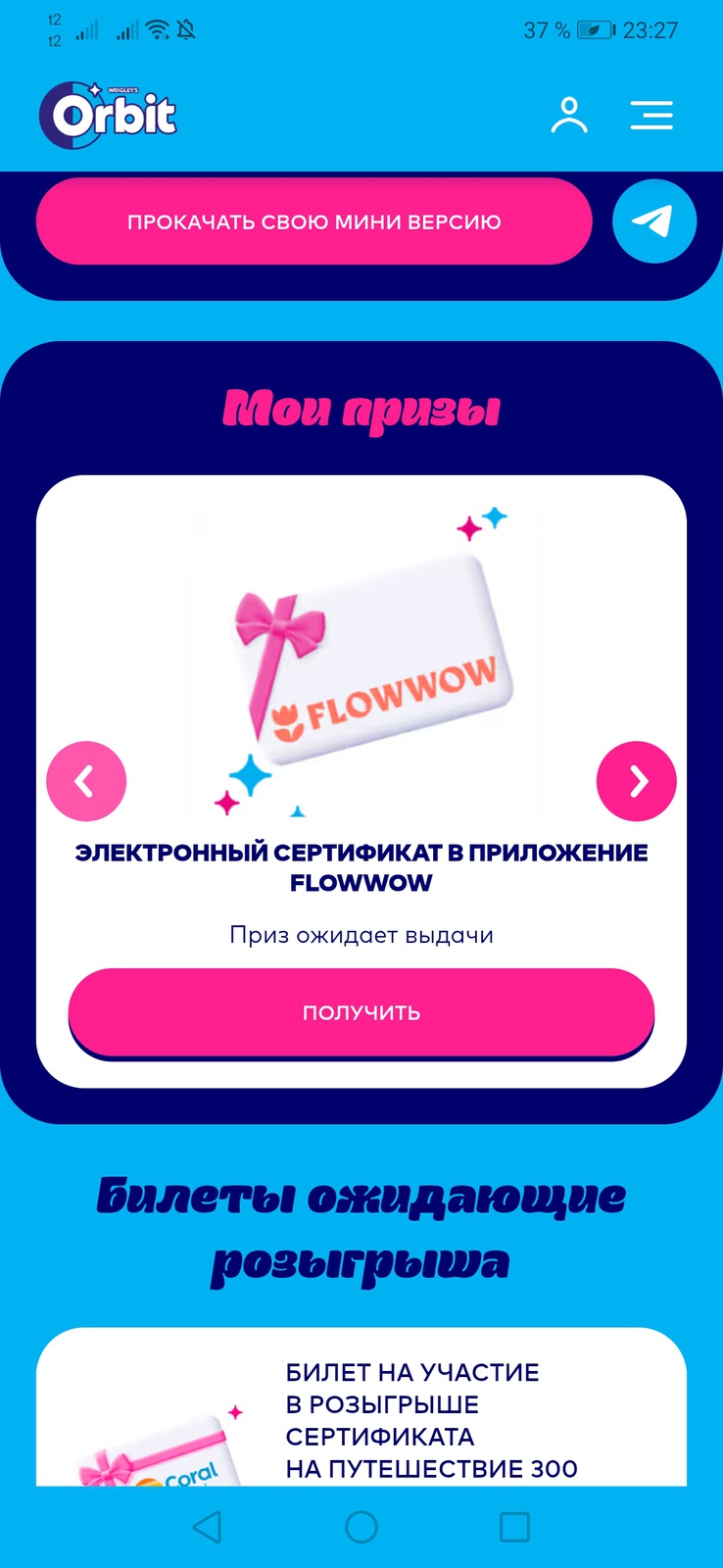 - Гарантированный приз (за сканирование упаковки Orbit®):