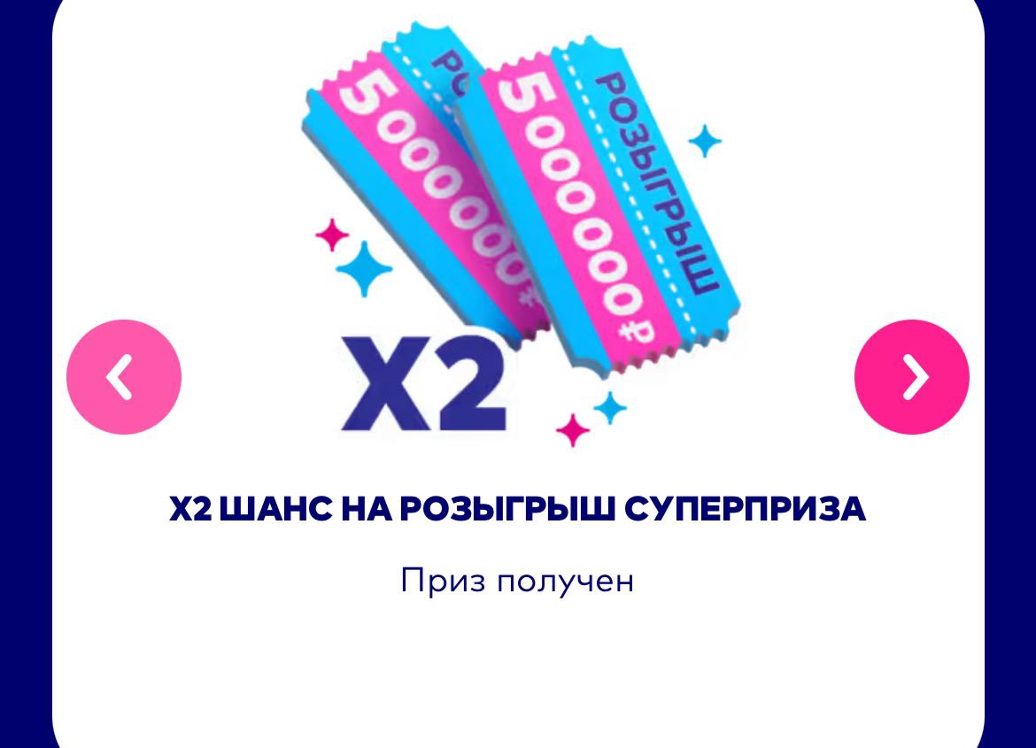 - Х2 шанса на розыгрыш Суперприза – неограниченное количество;