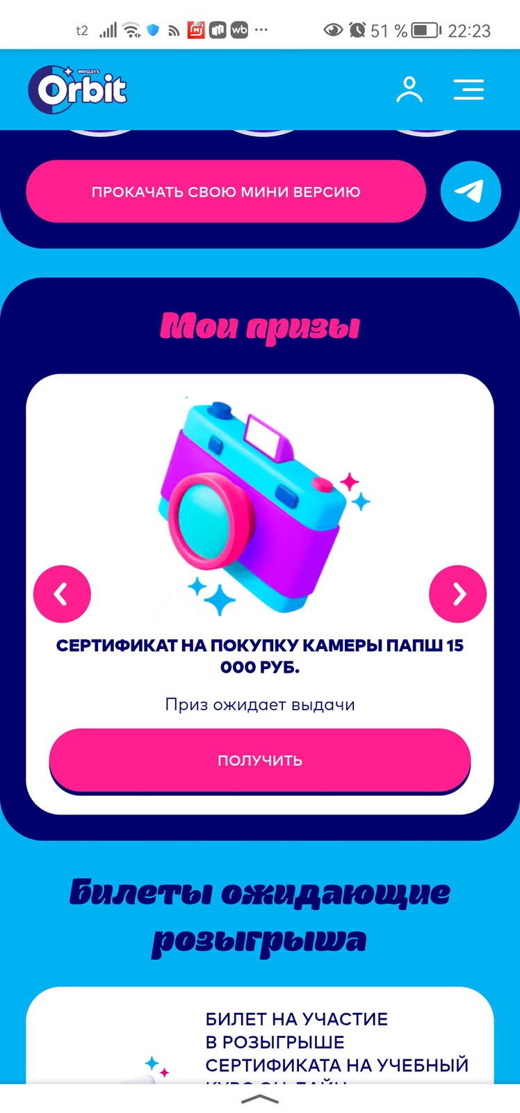 - Гарантированный приз (за сканирование упаковки Orbit®):