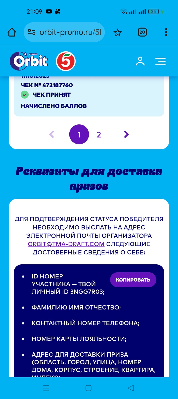 - Регистрируйте чеки и выигрывайте призы.