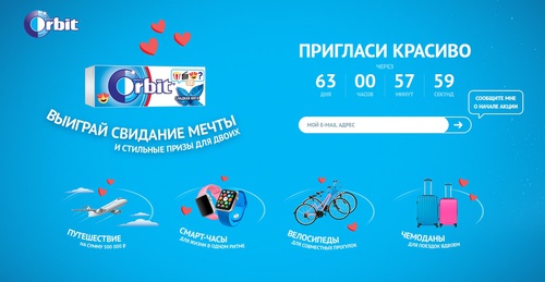 С 4 марта 2019 года участвуй в акции от Orbit. Выиграй свидание мечты и стильные призы для двоих!