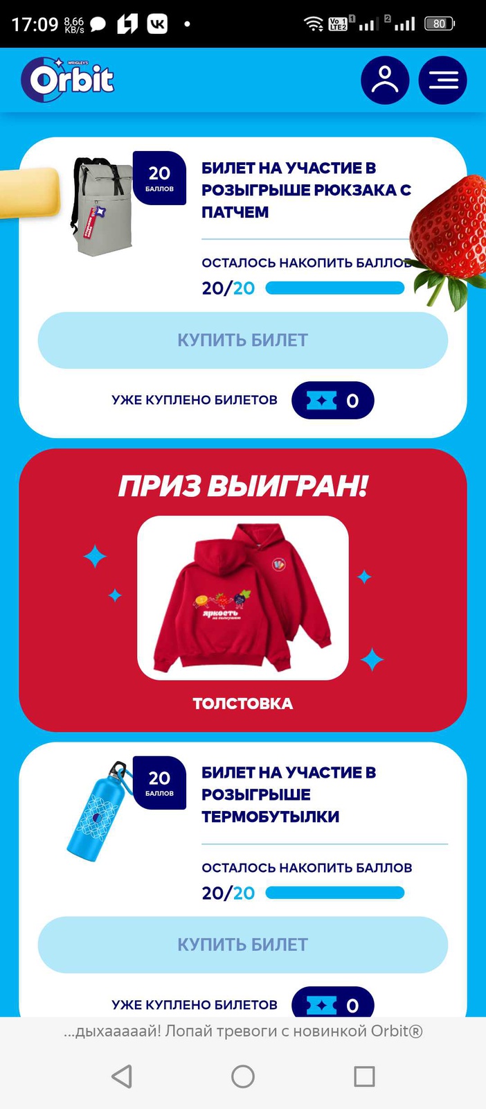 Покупайте любой продукт Orbit®, регистрируйте чеки и копите баллы, обменивай баллы на эксклюзивный мерч и шансы на участие в розыгрыше призов.