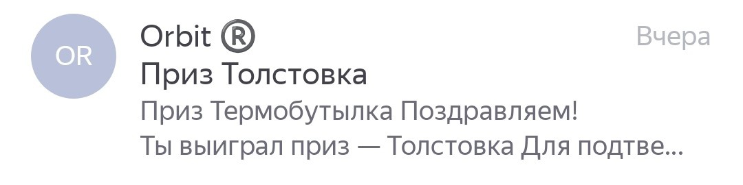 Но и написание сообщения странное. Приз Толстовка, а пишут термобутылка. Я не участвовала в розыгрыше бутылки.