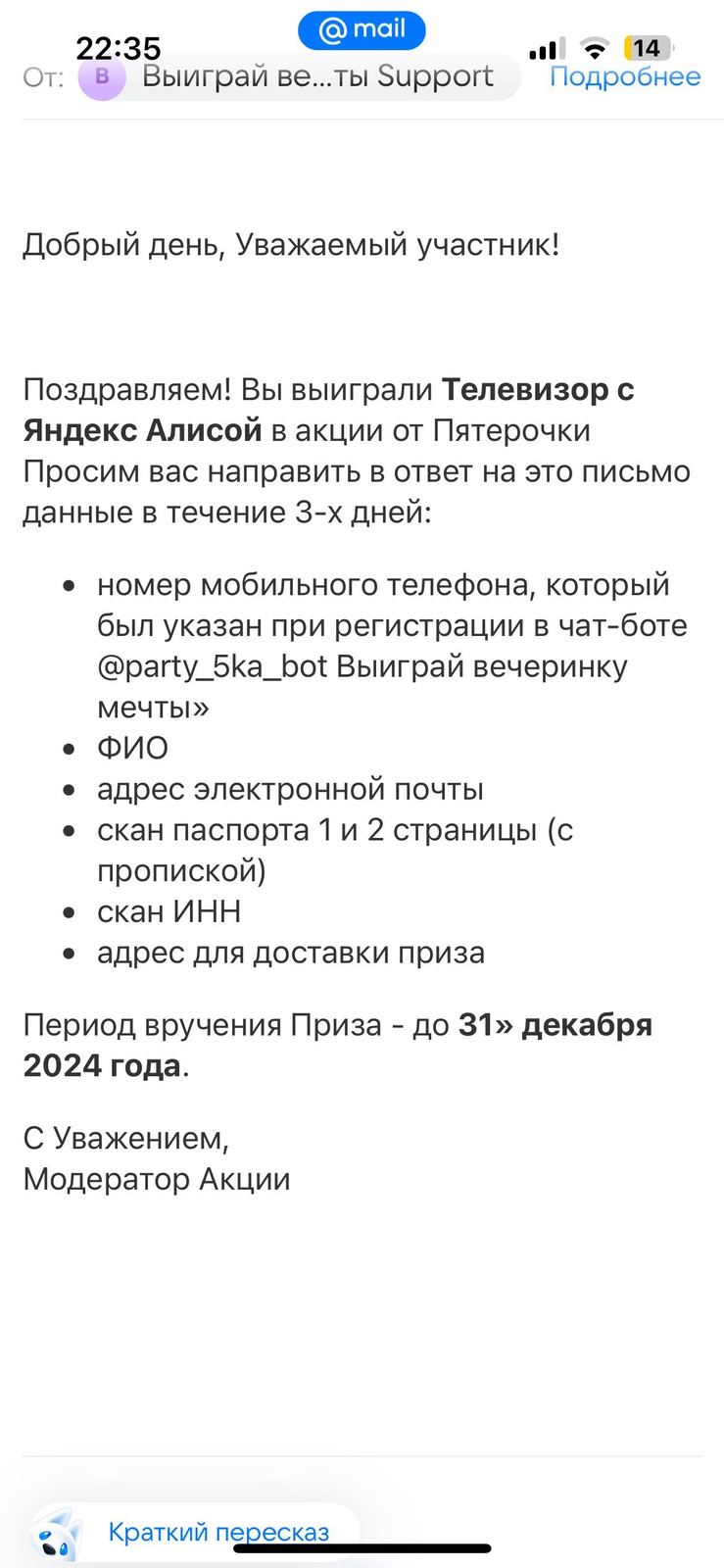 - 300 баллов на карту «Х5 Клуба» в количестве - 60 000 шт.