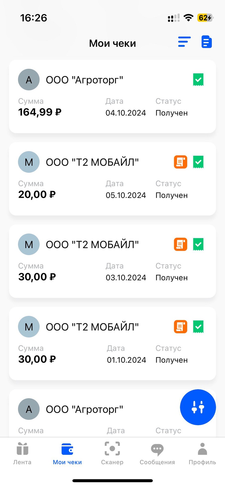 И обратила внимание, что ранее чеки видимо приходили автоматом туда: август, сентябрь, типа где моя почта указана на каких ресурсах, приходили в это приложение.