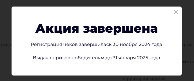- Сроки регистрации Чеков в чат-боте для участия в Акции: с 00 часов 00 минут 01 секунд «30» сентября 2024 г. по 23 часа 59 минут 59 секунд «02» декабря 2024 г. (включительно).
